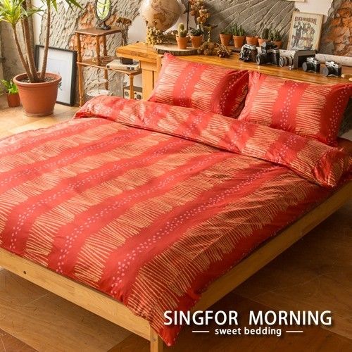 - fb討論-一夜好眠【eyah】單人三件式精梳純棉被套床包組-LV-簡約拼貼-紅